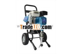 Attached with pneumatic tire, this portable gasoline airless sprayer could go anywhere the job demands and sprays a variety of coatings.